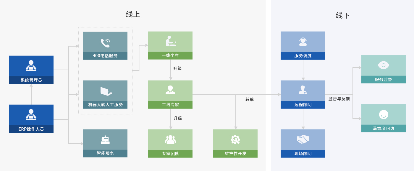凯发k8一触即发服务支持O2O服务模式,实现了线上、线下整合,人工与AI进行结合