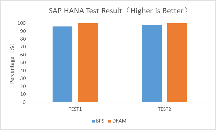 ●TEST1测试结果表明,BPS性能能够达到DRAM配置的96%。
