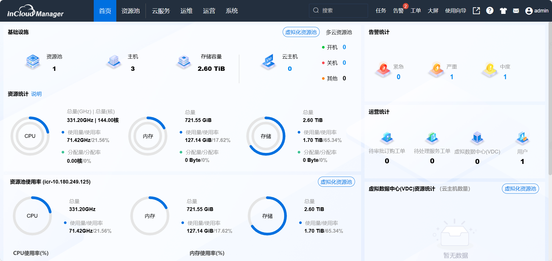 4、统一成本优化:InCloud Manager支持基于预算配额管理、成本可视化以及成本优化策略配置实现成本优化控制,实现智能化运营管理