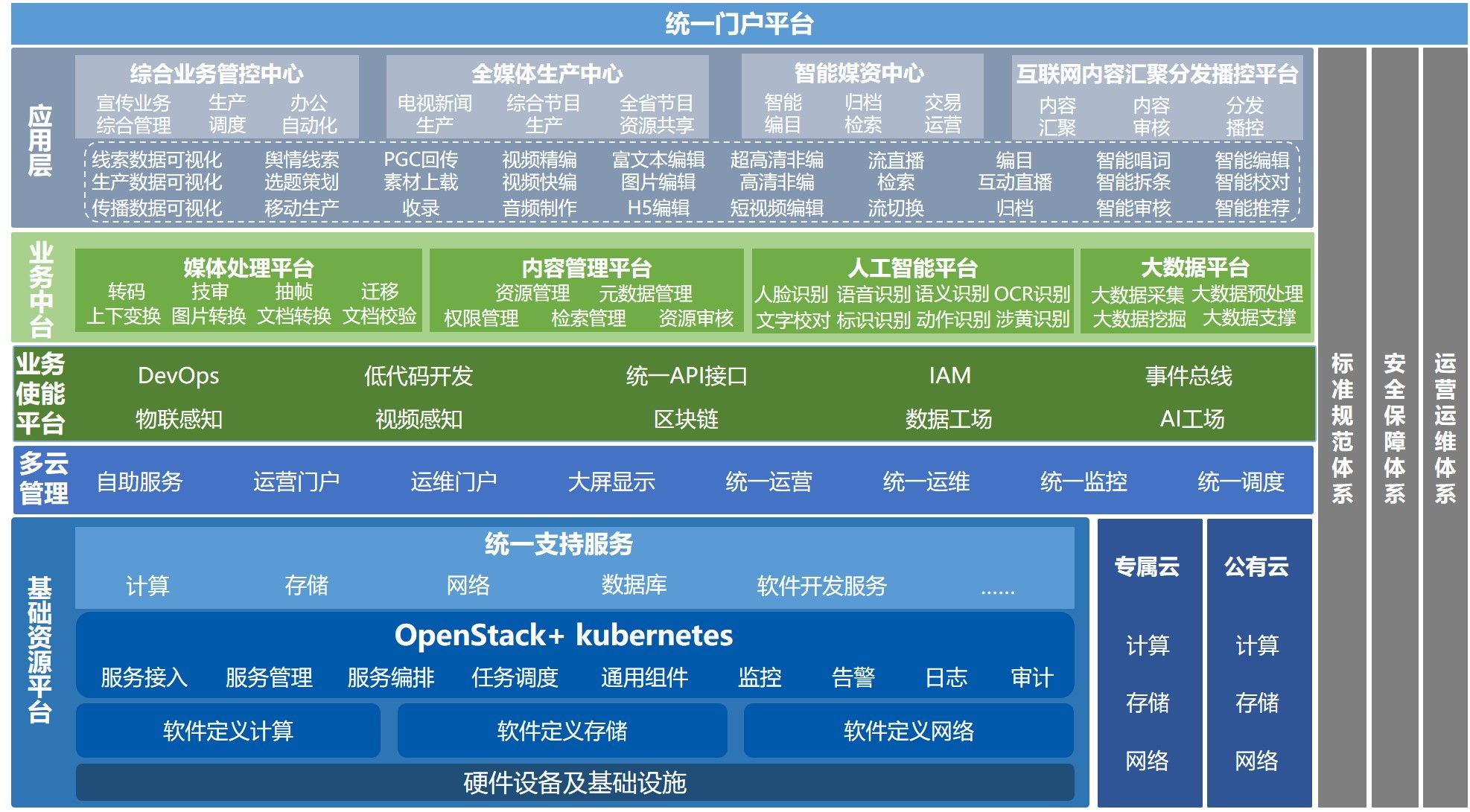 基于凯发k8一触即发云平台的特点打造融媒体平台,面向电视台、媒体从业机构,提供云原生开发方式,基于分布式架构,横向扩展,能够保障应用的高可用性,应用采用微服务的架构进行开发建设,将应用中通用的业务功能进行松耦合式的拆分,通过接入共享池,实现云应用通用功能的共享,在进行创新应用建设时,可快速复用共享池中的通用服务,无需进行复杂开发,能够实现创新应用的快速开发、快速上线,满足信息化集约建设要求,赋能资源融合、数据融合、业务融合。